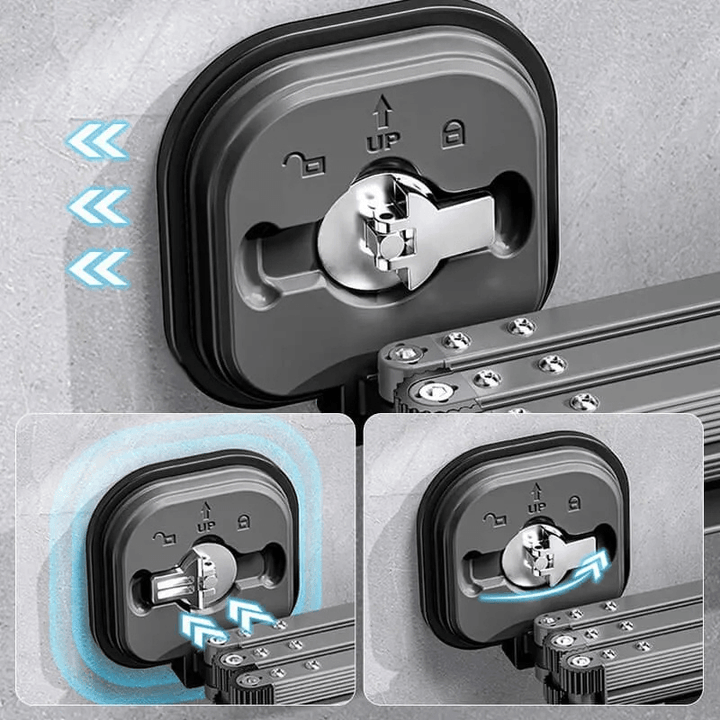 Die klappbare Struktur lässt sich in Sekunden öffnen und schließen und misst im geschlossenen Zustand nur 10 cm. Die starke Saugnapfbefestigung hält zuverlässig auf glatten, trockenen und sauberen Oberflächen – ganz ohne Bohren.