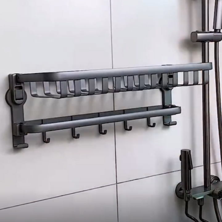 Die kompakte und vielseitige Konstruktion bietet zahlreiche Aufbewahrungsmöglichkeiten, ohne wertvollen Raum zu beanspruchen. Die starken Saugnäpfe haften sicher auf glatten, sauberen und trockenen Oberflächen wie Fliesen, Glas und anderen geeigneten Materialien – ganz ohne Bohren oder Werkzeug.